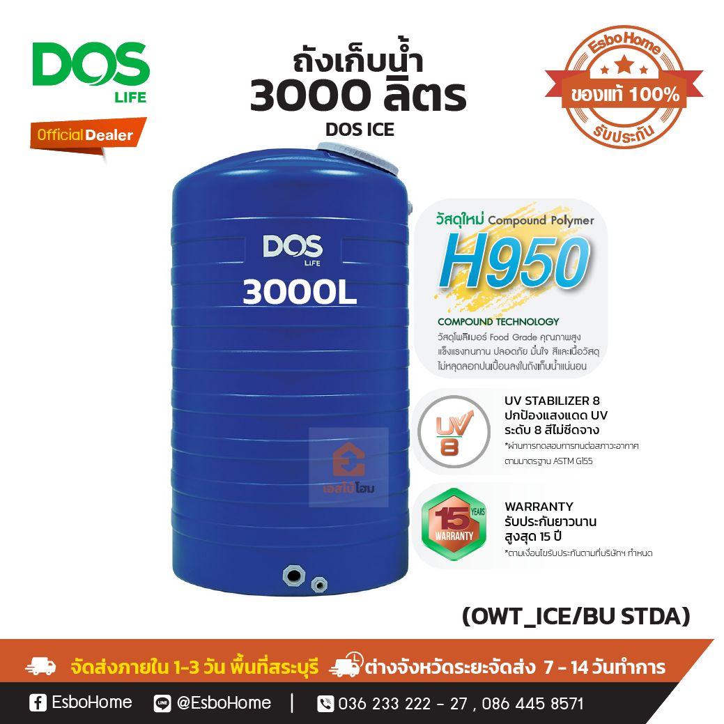 - ถังเก็บน้ำ DOS 3000 ลิตร ความกว้าง 141 ซม.